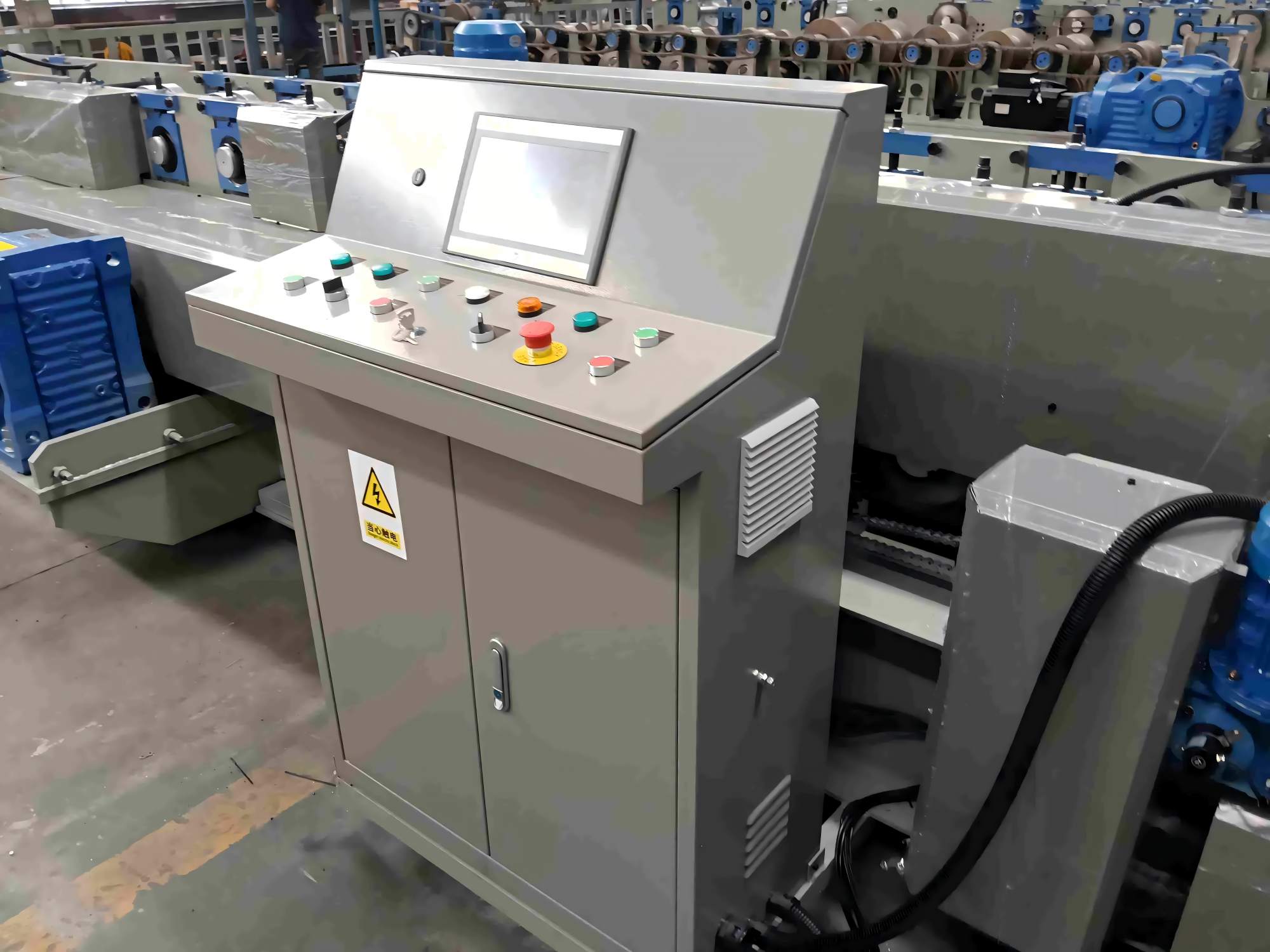 PLC kontrol kabini: Delta PLC + Omron kodlayıcı, dokunmatik ekran çalışması, uzunluk hatası ±2mm, Çince ve İngilizceyi destekler, 380V/50HZ üç fazlı (özelleştirilebilir).